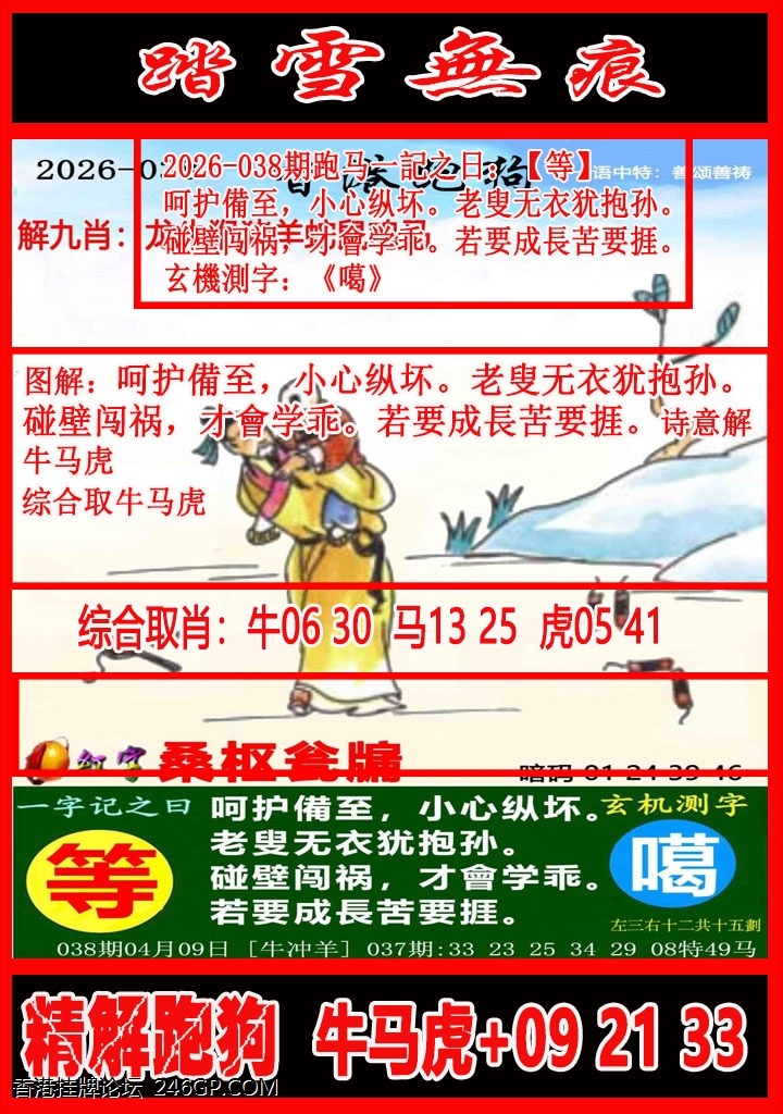 038期:白姐特段/简单发财诗/马会欲钱料/七娘一句中/开藏特图料